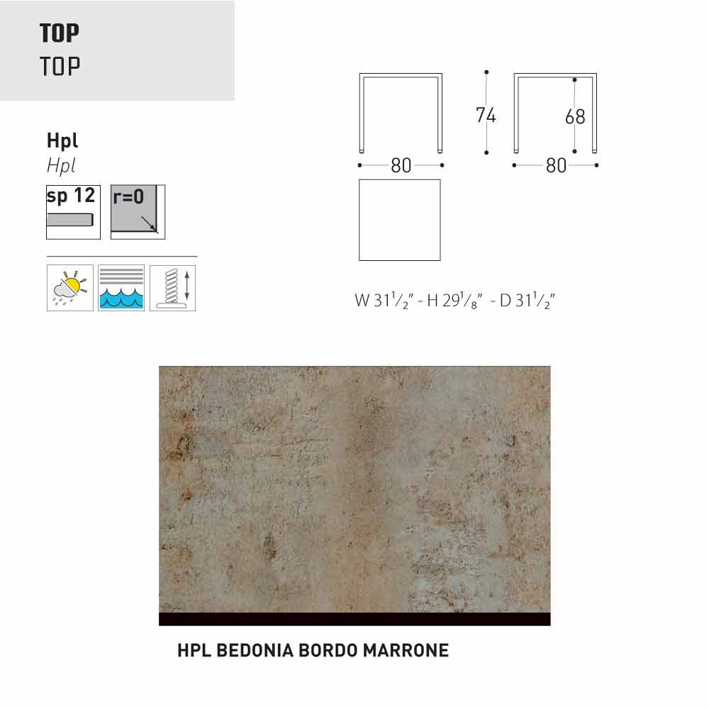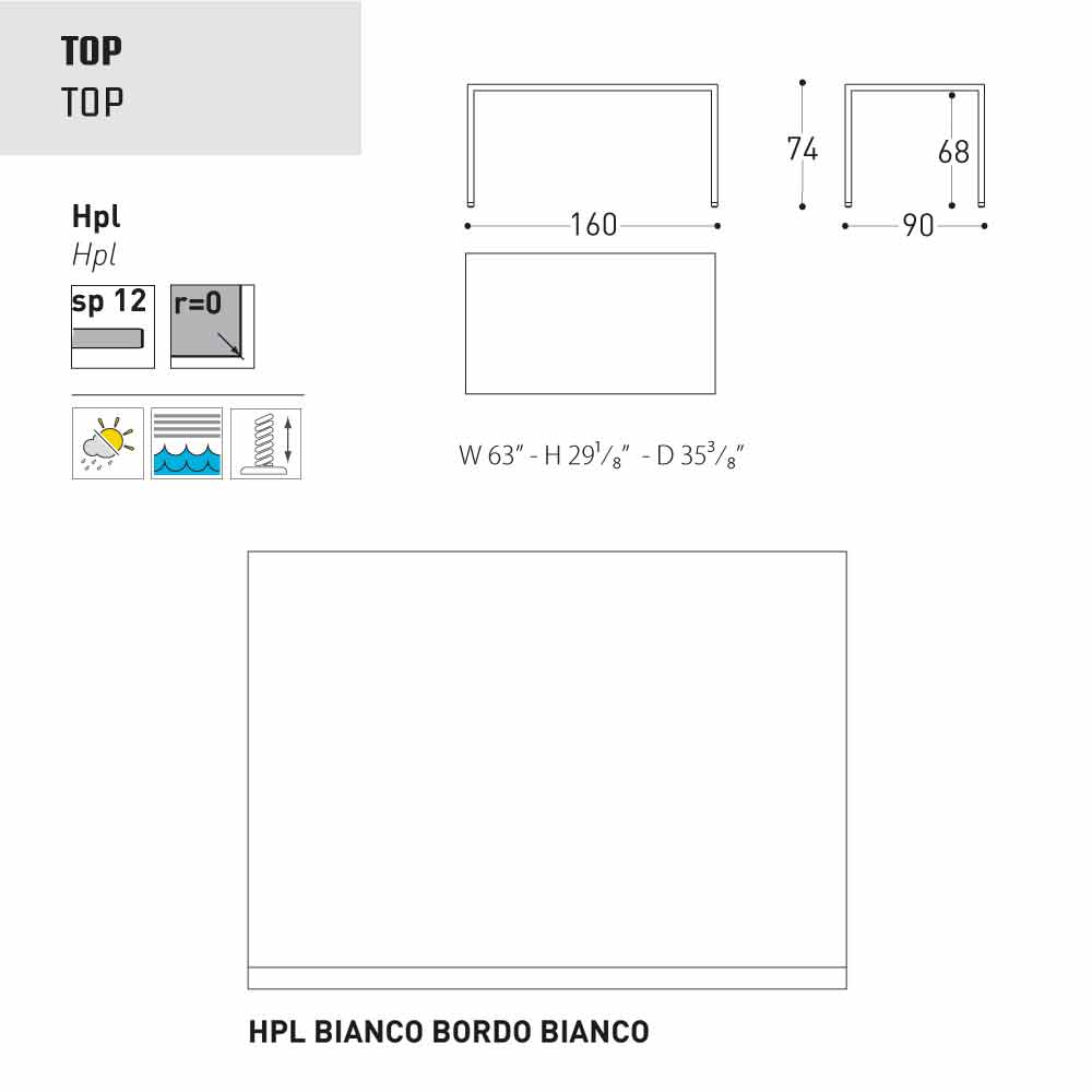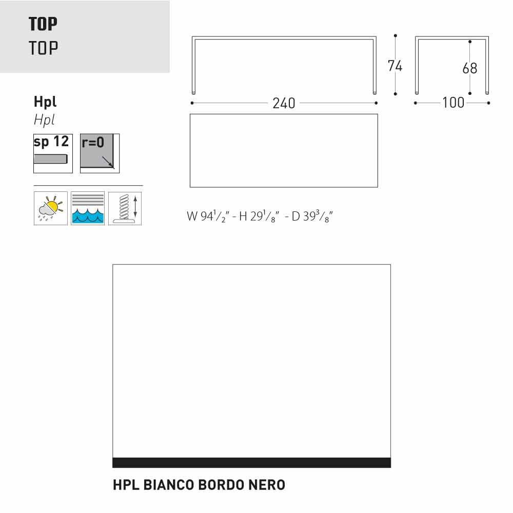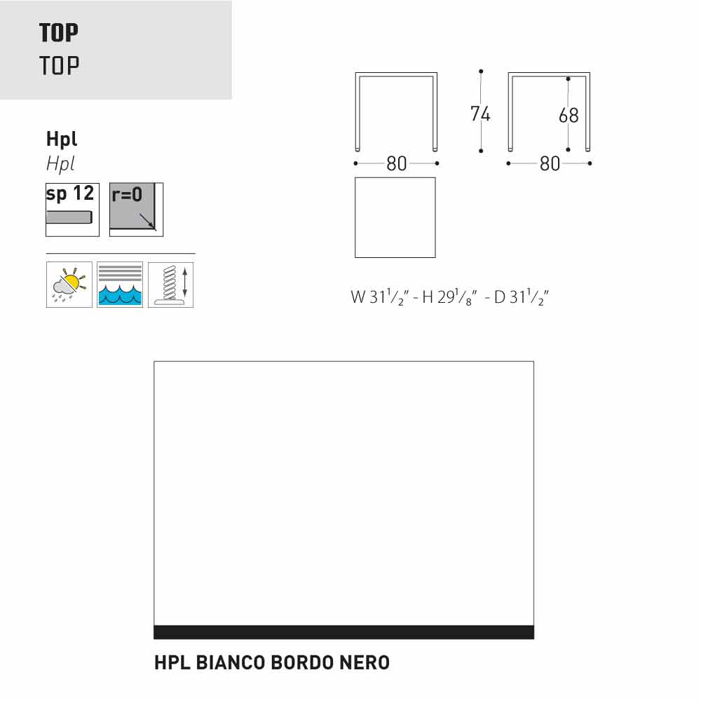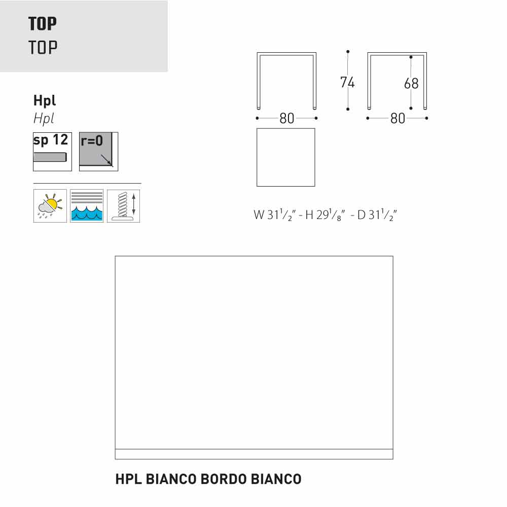HPL technical features : High-pressure laminates. They are made of several layers of paper (70%) impregnated with thermosetting resins (30%) and compacted for about 45-50 minutes through the combined action of heat ( at about 150 degrees) and high pressure (greater than 7 MPa / Megapascal per square meter.) The result is a stable, nonreactive, non-porous and high-density product. It has physical and chemical features of high mechanical strength (controlled temperature excursion +80/-40 degrees, for less than 30 seconds at extreme temperatures). It resists to light exposure and temperature variations, even in marine environments.