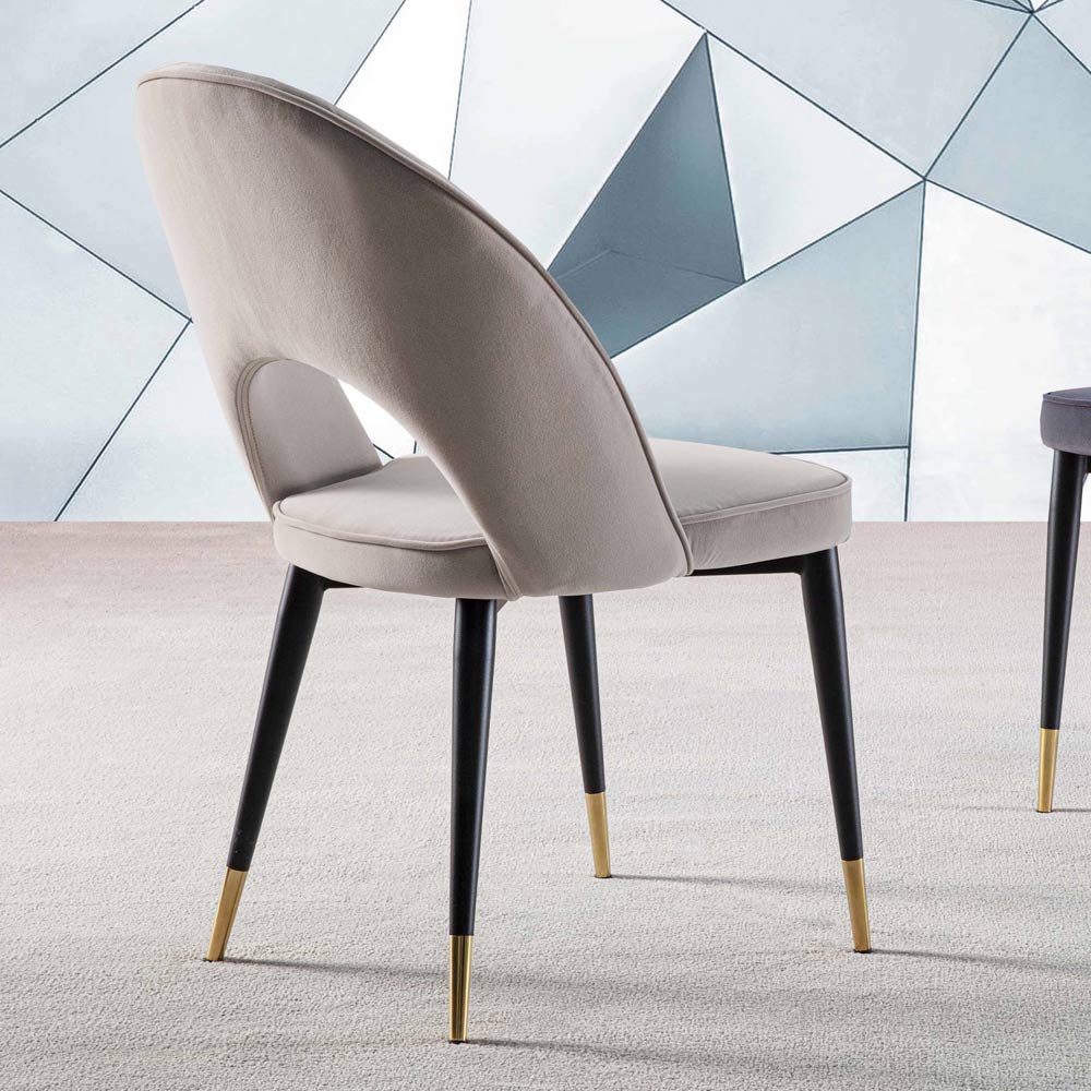 Chair upholstered in stain-resistant velvet and legs made of black painted metal enriched with satin brass feet. Limitless elegance distinguishes this wonderful chair with enveloping features whose design has been designed to offer a comfortable seat with a refined style capable of revolutionizing any furniture thanks to a strong and extremely refinedpersonality . The use of velvet together with black metal and satin brass helps to create a real design object capable of becoming the true protagonist of the room, making its aesthetics unique.