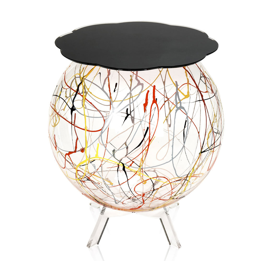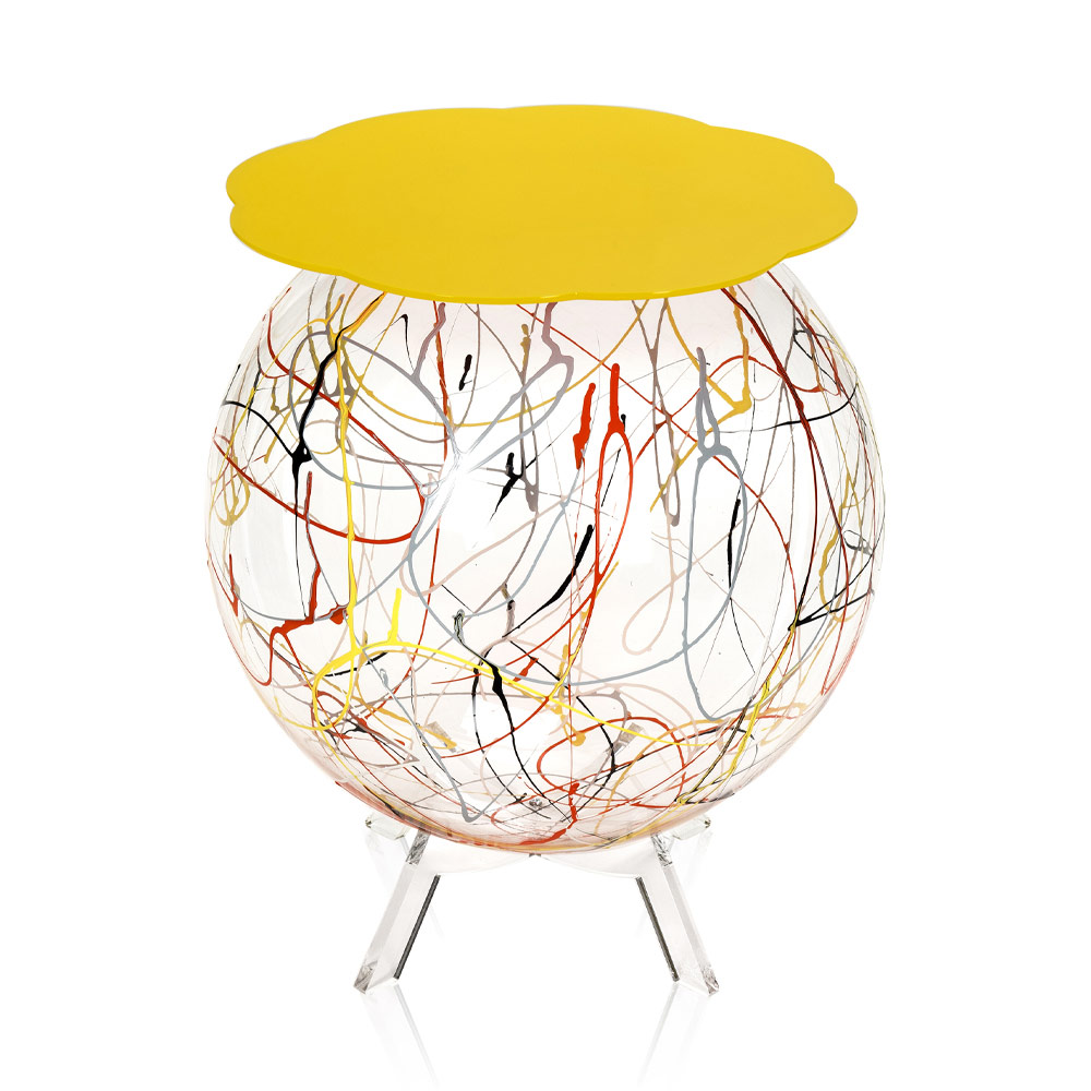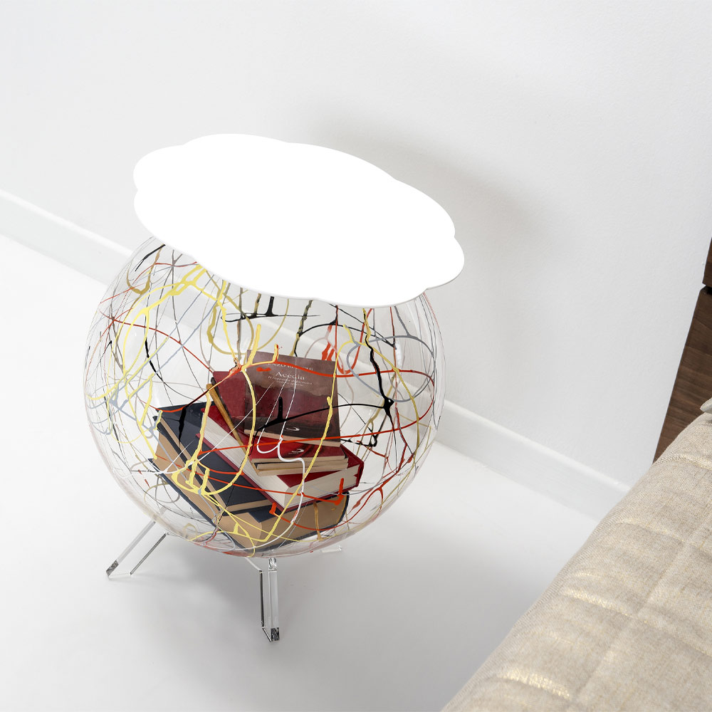 Bedside table in transparent plexiglass with colored paint made in Italy.