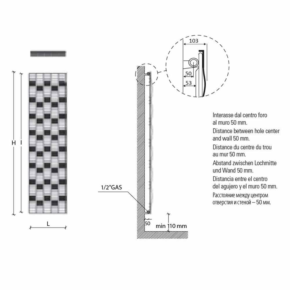 Hydraulic vertical designer steel radiator for the modern and made in Italy living room or bathroom.
