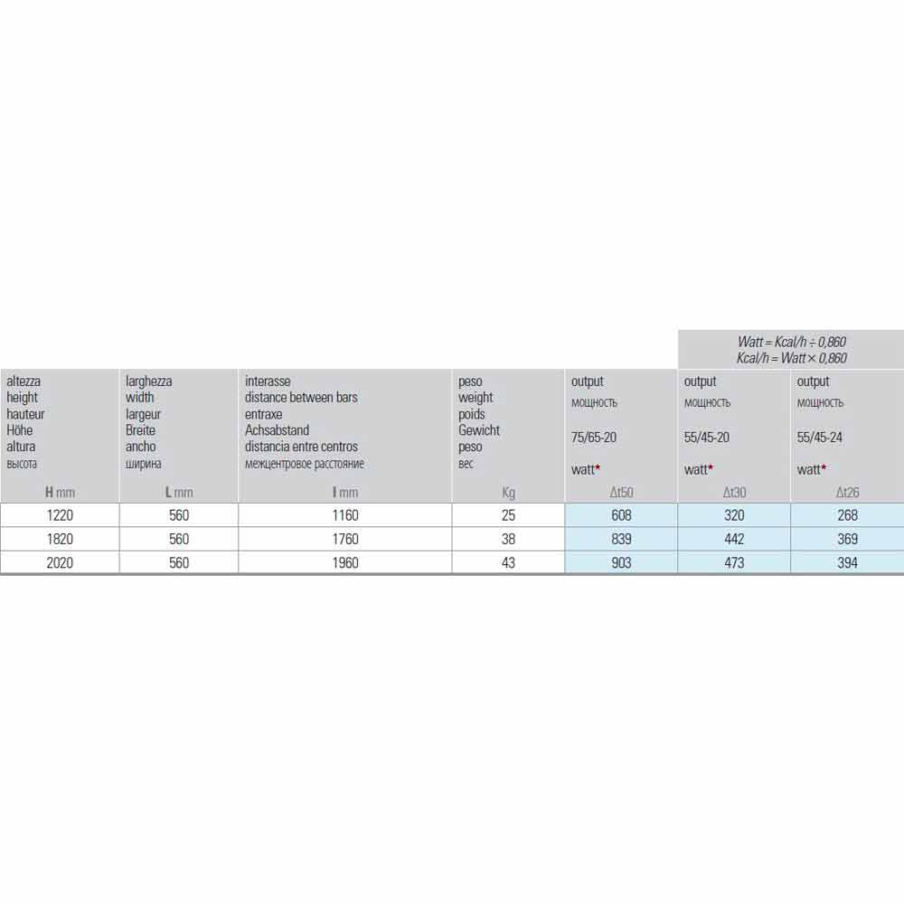 - H 1820 x L 560 x Inter. 1760 mm x Output w (Īt50 *) 839; Yield w (Īt30 *) 442; Yield w (Īt26 *) 369