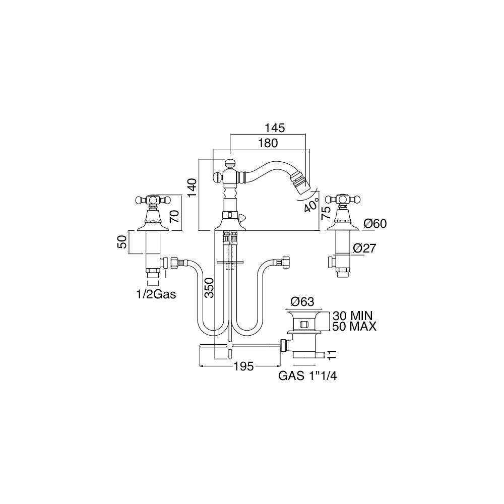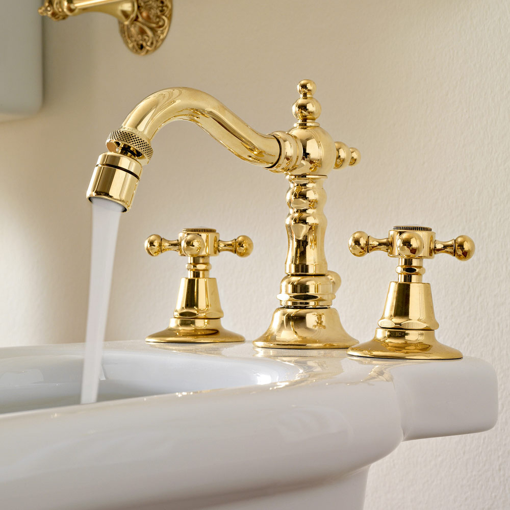 Vintage design 3-hole bidet mixer in brass made in Italy.