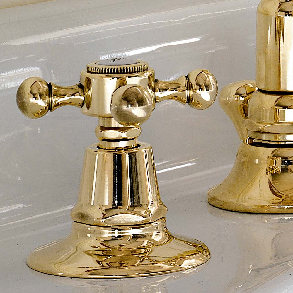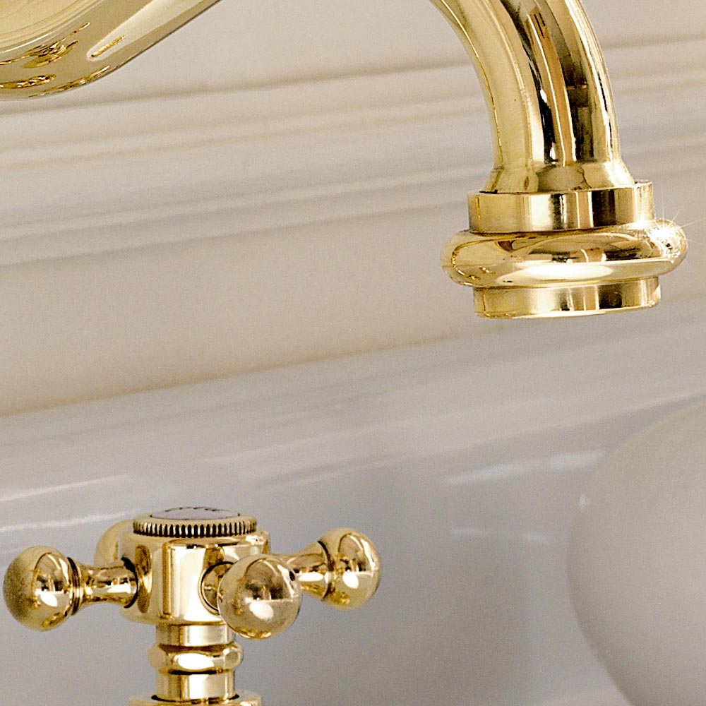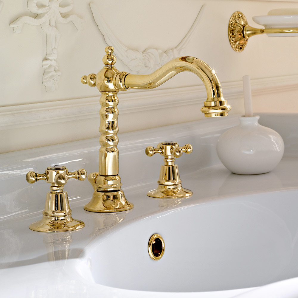 Design style 3-hole basin mixer in Ursula brass, made in Italy.