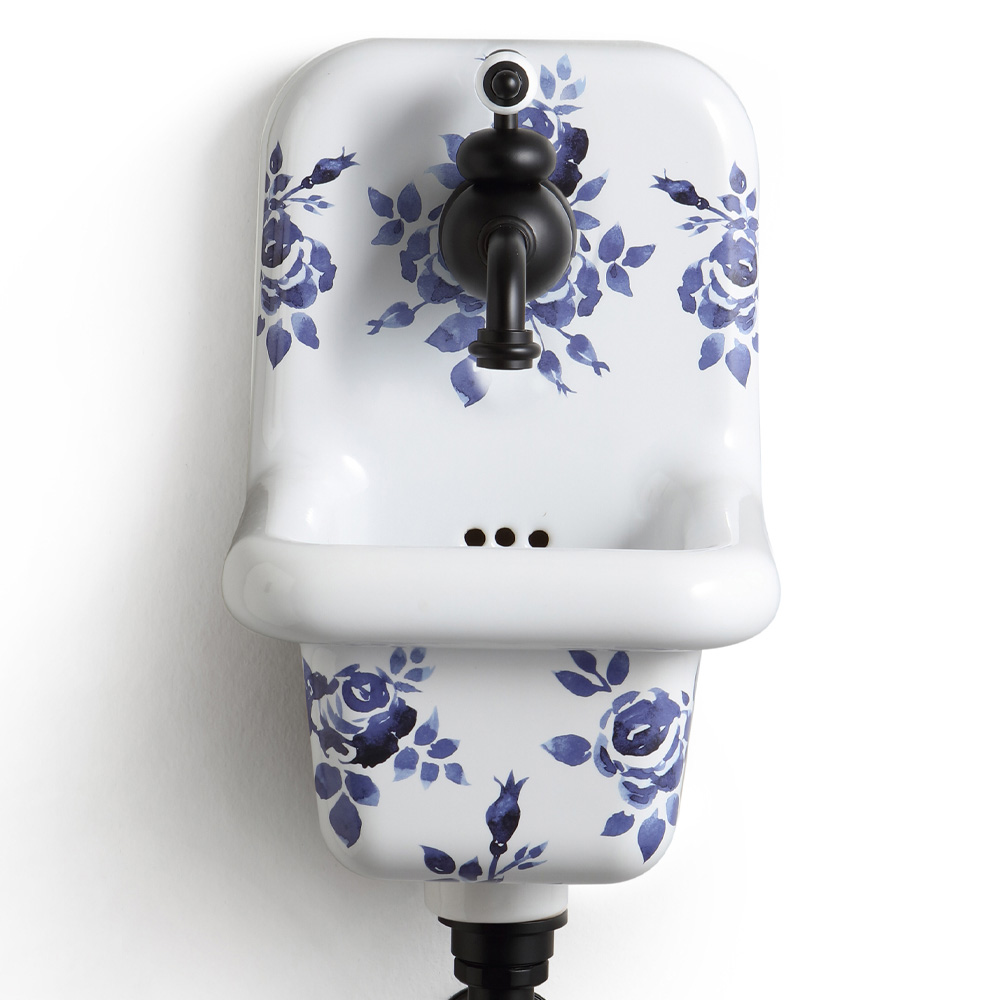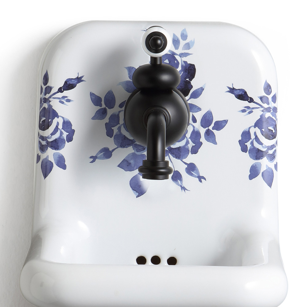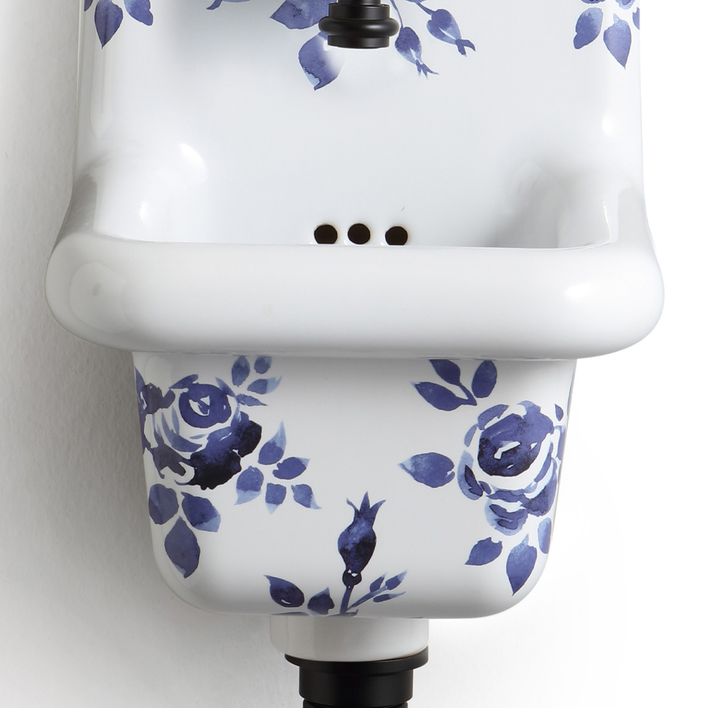 Wall-hung washbasin in patterned colored ceramic, vintage style.