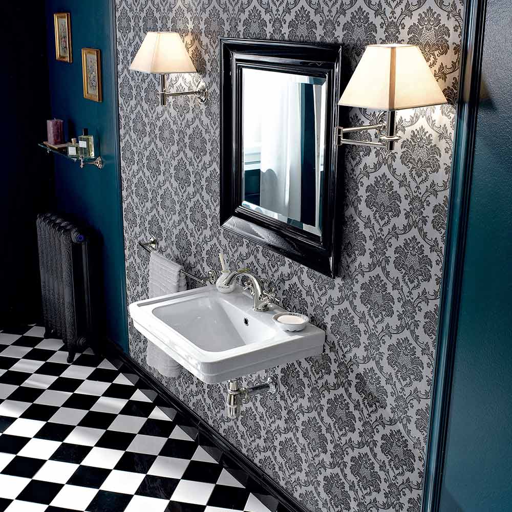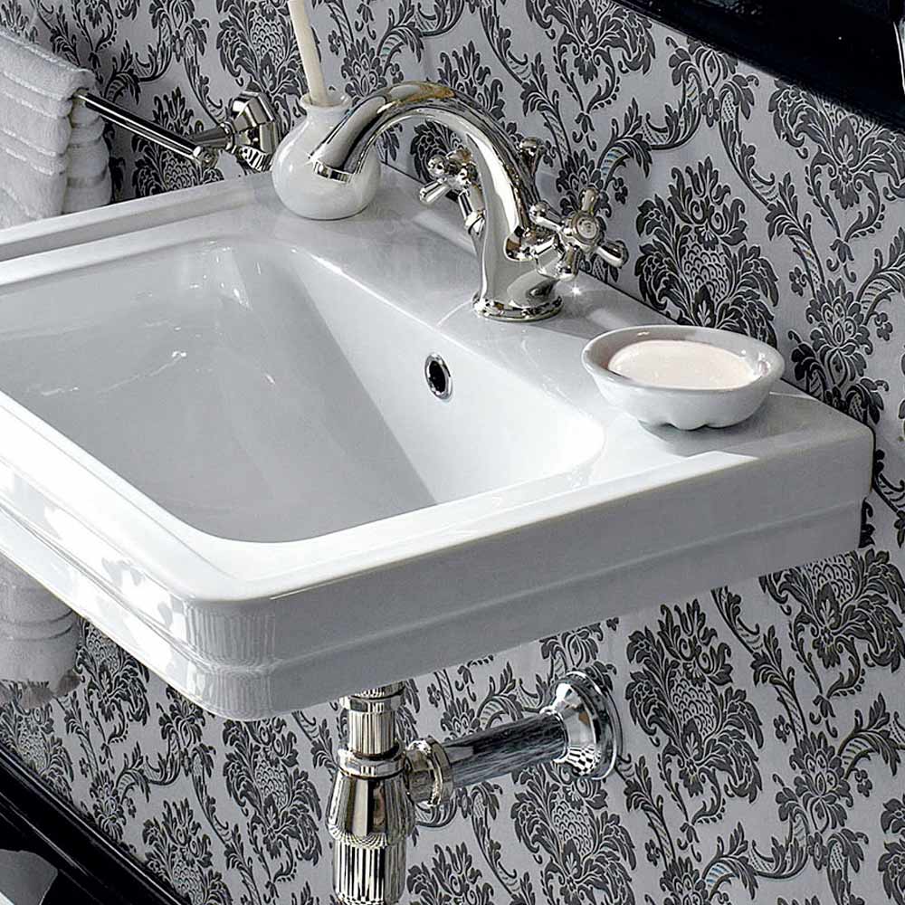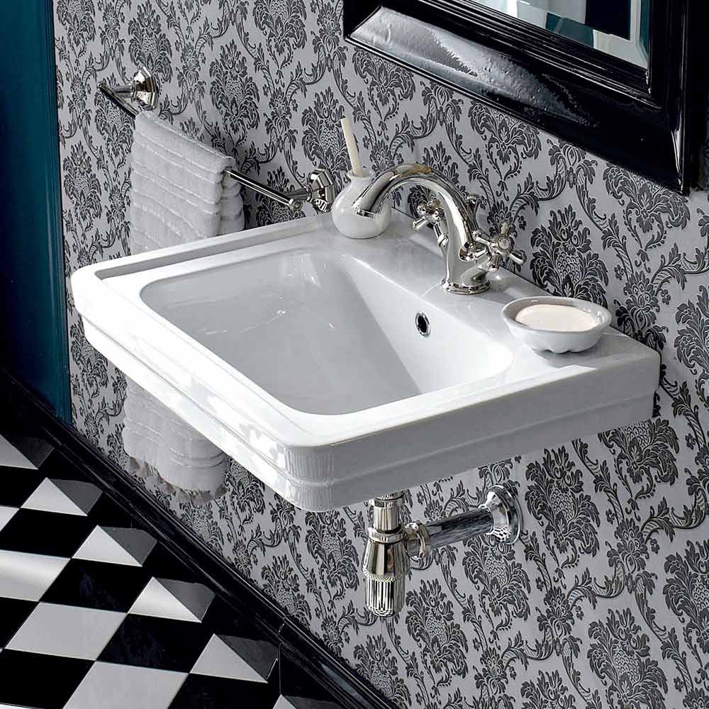 Classic style white ceramic wall hung washbasin made in Italy, Marwa.