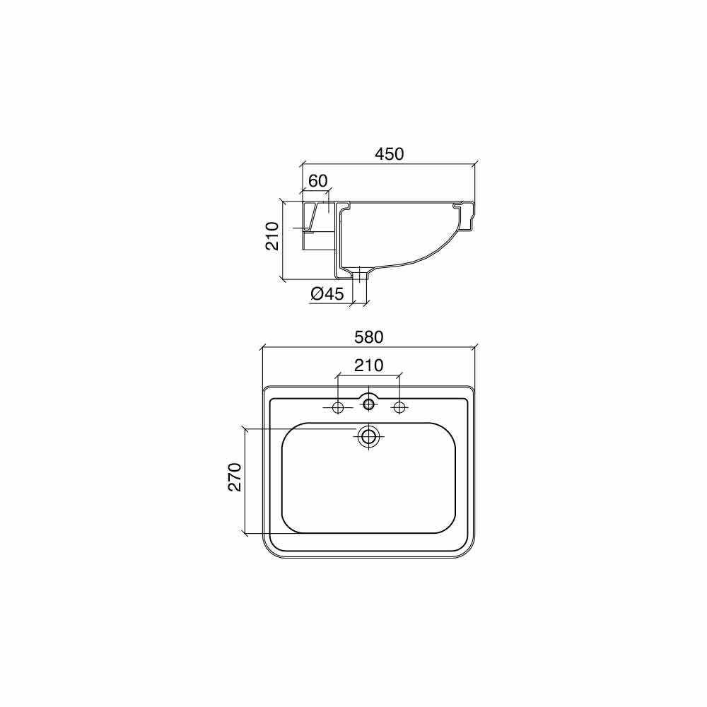 1 or 3 tap holes (to be specified when ordering), L 580 mm.