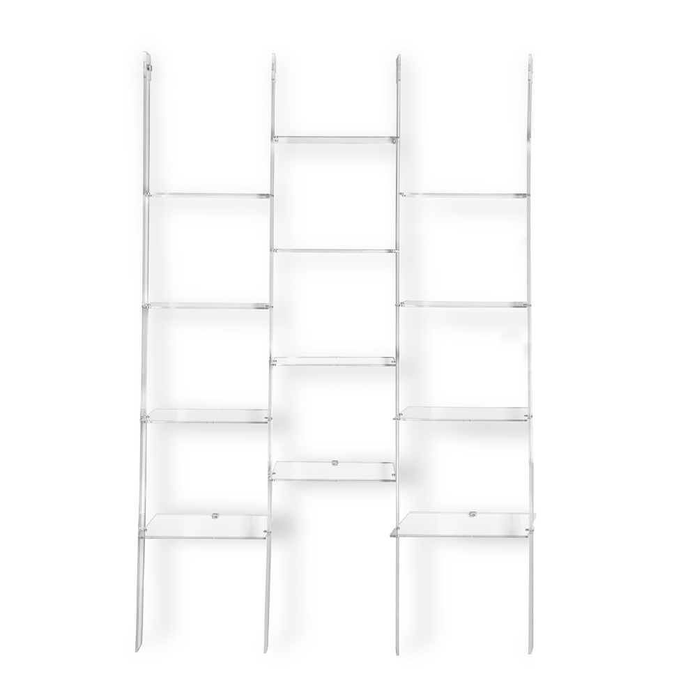 Staircase-shaped wall bookcase up to 4 elements in transparent plexiglass made in Italy.