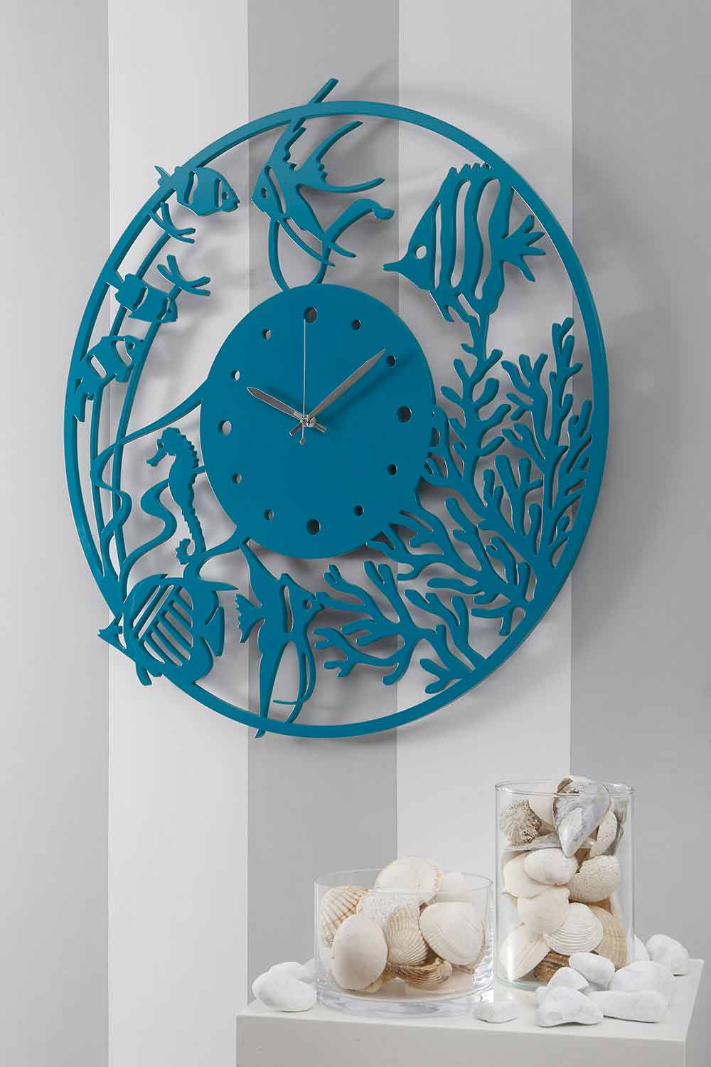 Play with your imagination and decorate the wall of the kitchen or living room in a nice way with the large round wall clock depicting an aquarium and the life of the seabed.