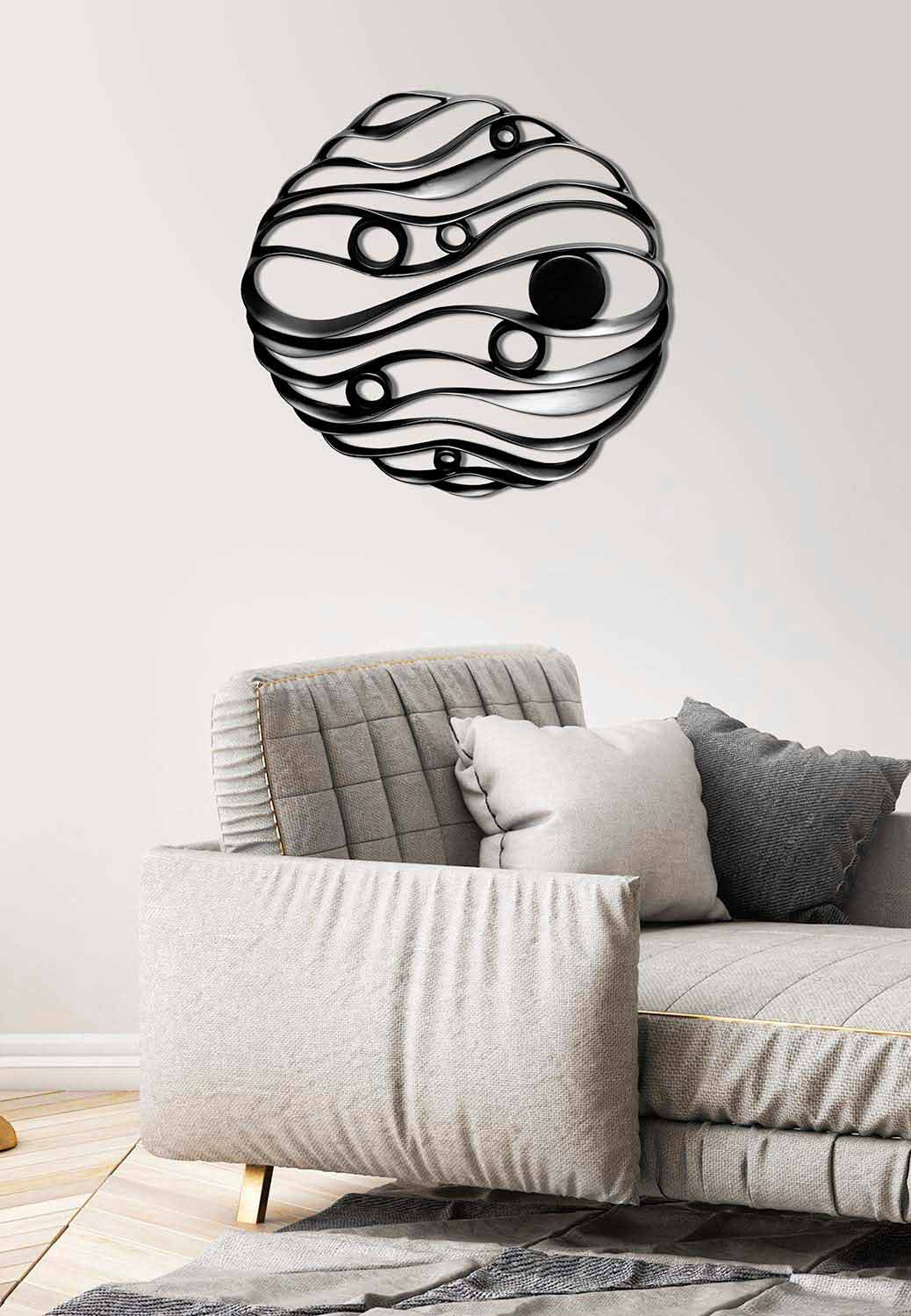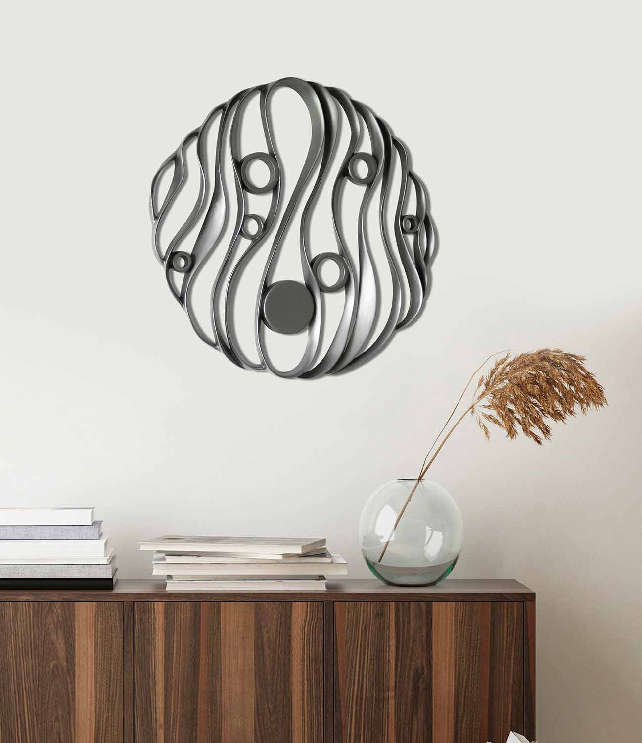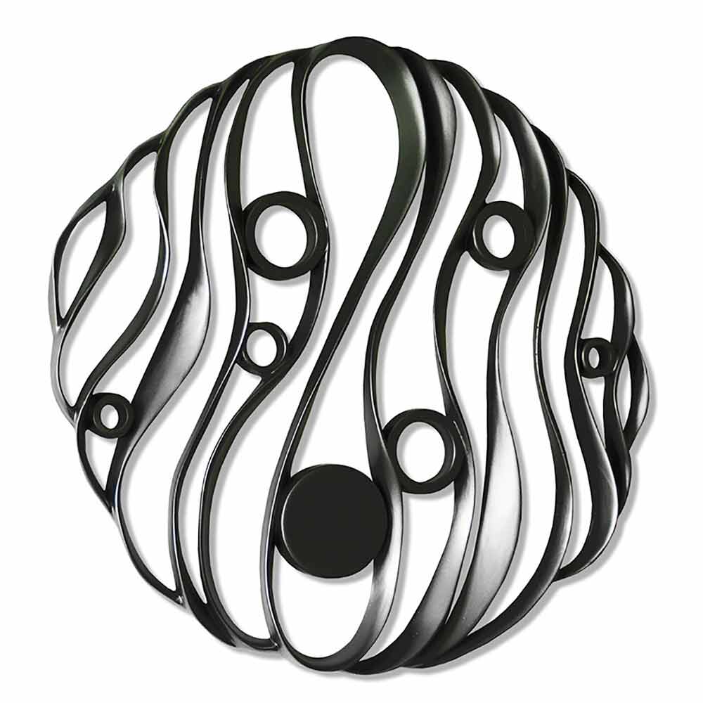 Modern design wall decoration in black or anthracite perforated ceramic, for living room or bedroom made in Italy.