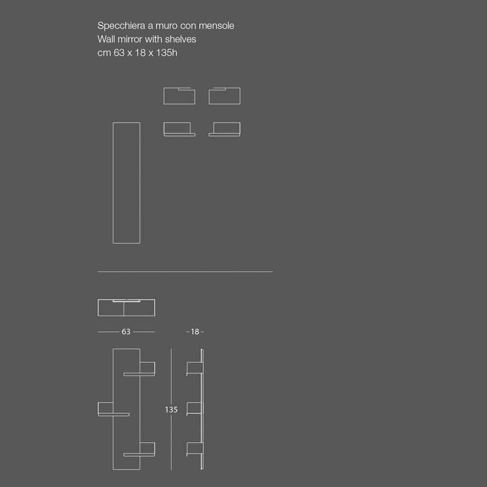 The strong point of the wall mirror is the great possibility of customization: in fact, you can choose to insert from 1 to 3 shelves, if you want them alternated between right and left, or if you prefer them in different colors, do not hesitate to contact us. .