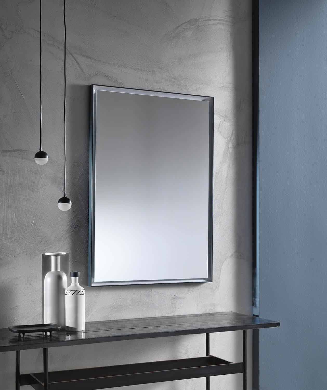 Wall mirror handcrafted and entirely Made in Italy . Characterized by the LED light available in two variants and the possibility of being installed both horizontally and vertically. External aluminum frame. Perfect to adapt to every need and ideal for completing design furnishings, giving character and modernity to every bathroom area.
