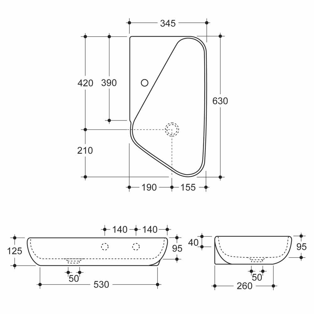 Countertop washbasin / design ceramic made in Italy Sheyla Design washbasin with triangular basin, equipped with shelf for housing faucet and soap. Suspended or support installation. This sink can be customized choosing between different finishes and decorations: to request information and / or a personalized quote write to clienti@viadurini.it. NB: For cleaning it is strongly recommended to use non-aggressive products, which may alter or damage the finish. Taps are not included in the price.
