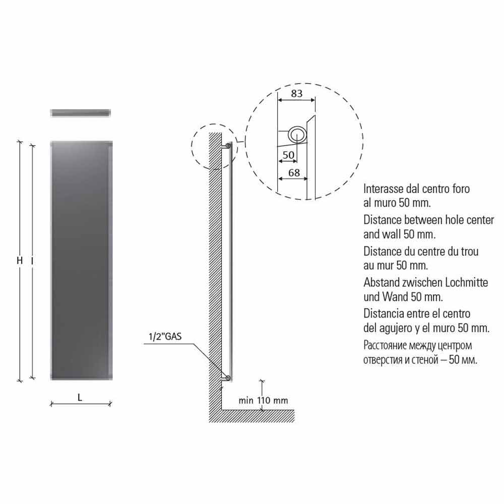 Vertical hydraulic wall-mounted radiator of modern design in steel, made in Italy.