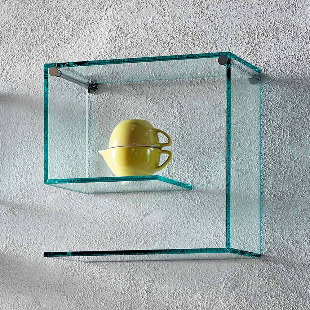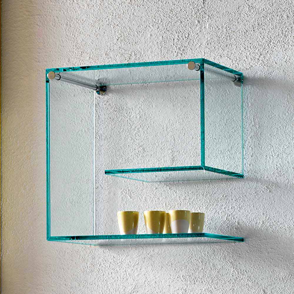 This pair of wall shelves is characterized by its versatile and geometric design entirely made of 10 mm thick float glass in the transparent finish.