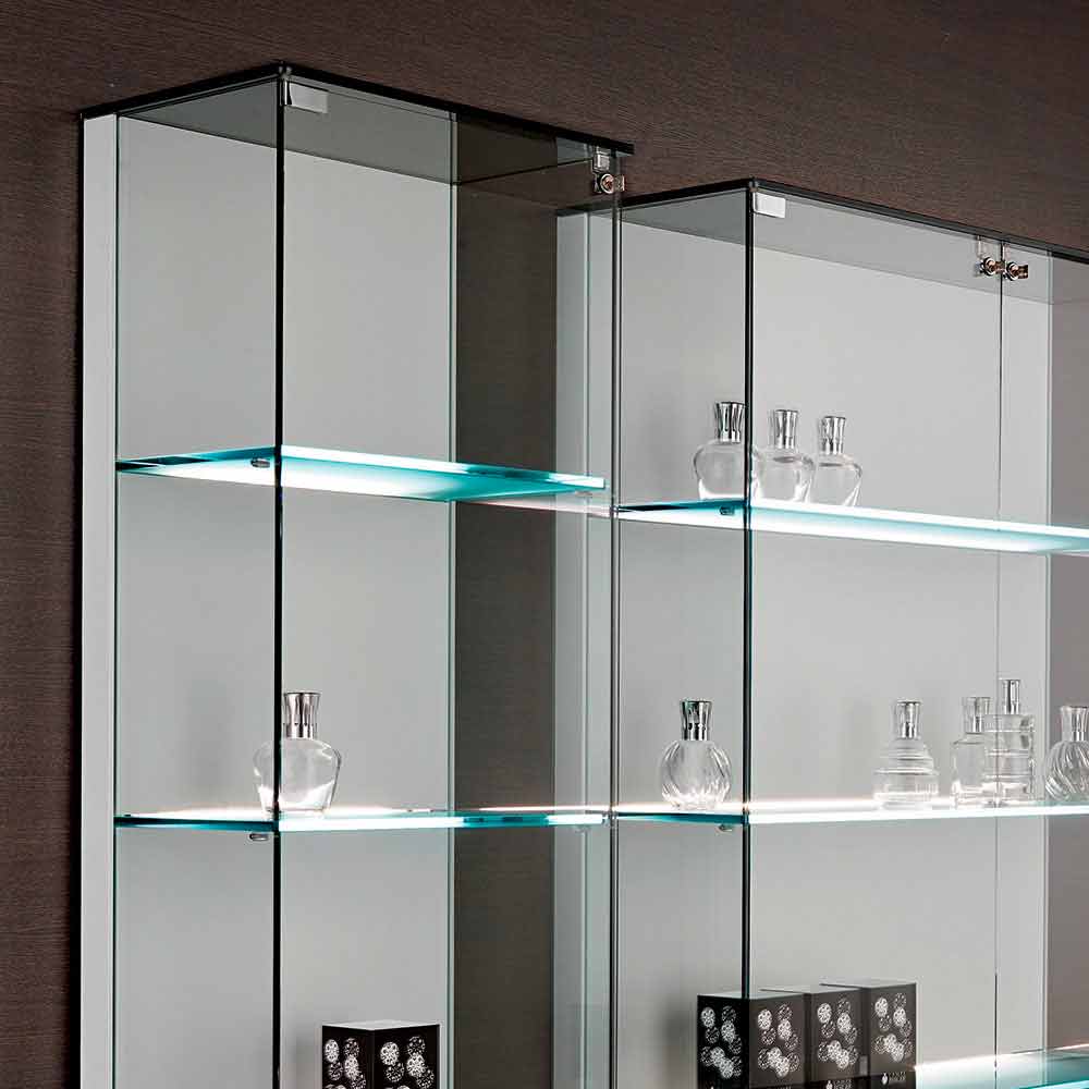 Its elegance is released to the maximum through the acid-etched glass shelves illuminated with LED light with a maximum capacity of 7.5 kg each.