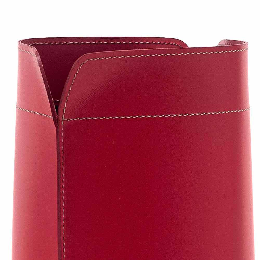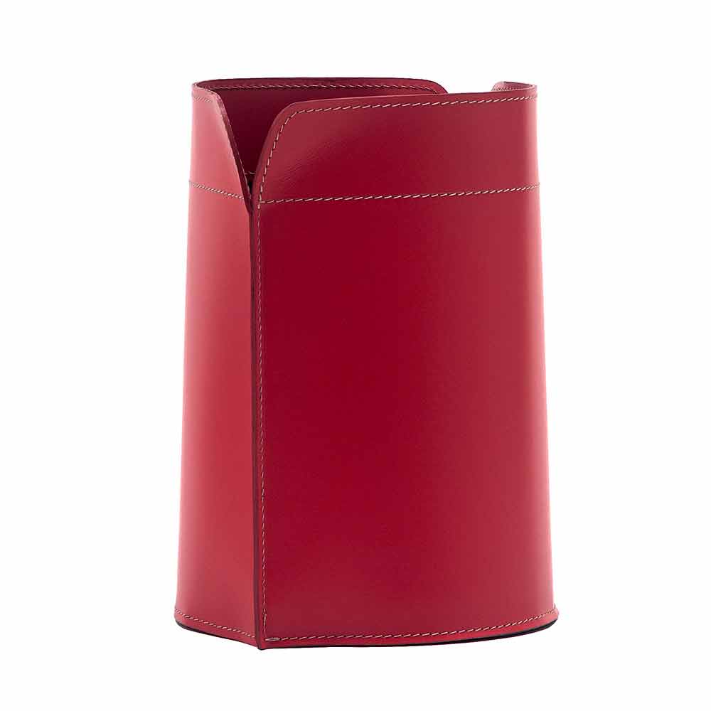 Canistro leather waste paper basket Canistro is an elegant piece of furniture suitable to be placed either in the office or in the living room or in the bedroom. Practicality and design come together, giving aesthetic and decorative value to a purely functional complement. It is made of precious regenerated leather, available in different colors. The bottom is in plywood and is also covered in leather. Canistro is produced entirely in Italy by skilled artisans. The sinuous shapes and the fascination of the artistic creation represent the perfect synthesis of Made in Italy.