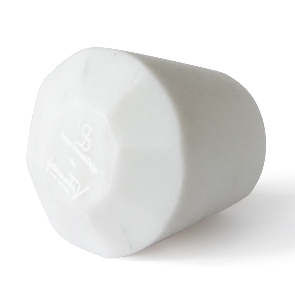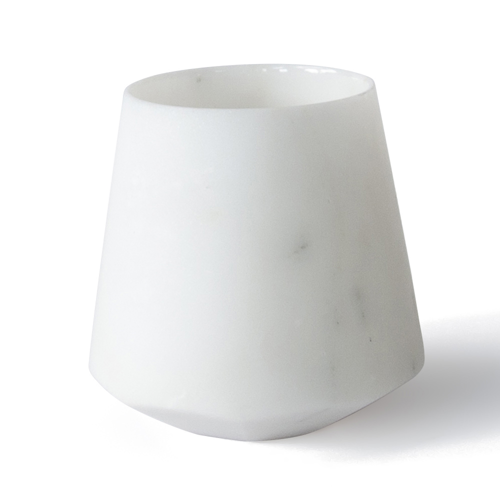This water glass is characterized by the elegance it releases and which it gives both on the table and as a decorative object. A sophisticated and refined design capable of becoming the protagonist in the destination environment thanks to its essentiality emphasized by the satin white Carrara marble with which it is made.