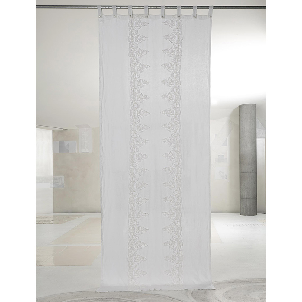 White curtain in light linen with central lace of elegant decoration, handmade quality made in Italy.
