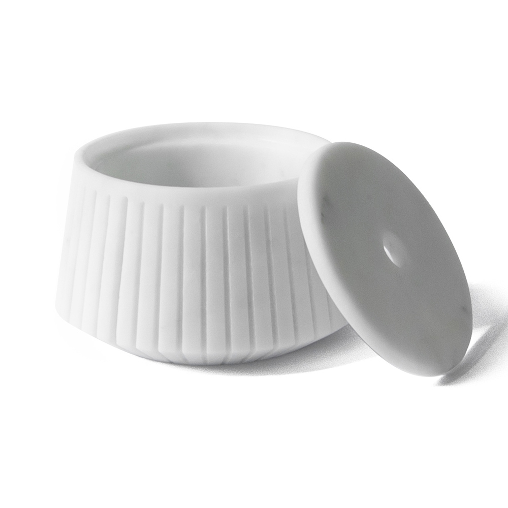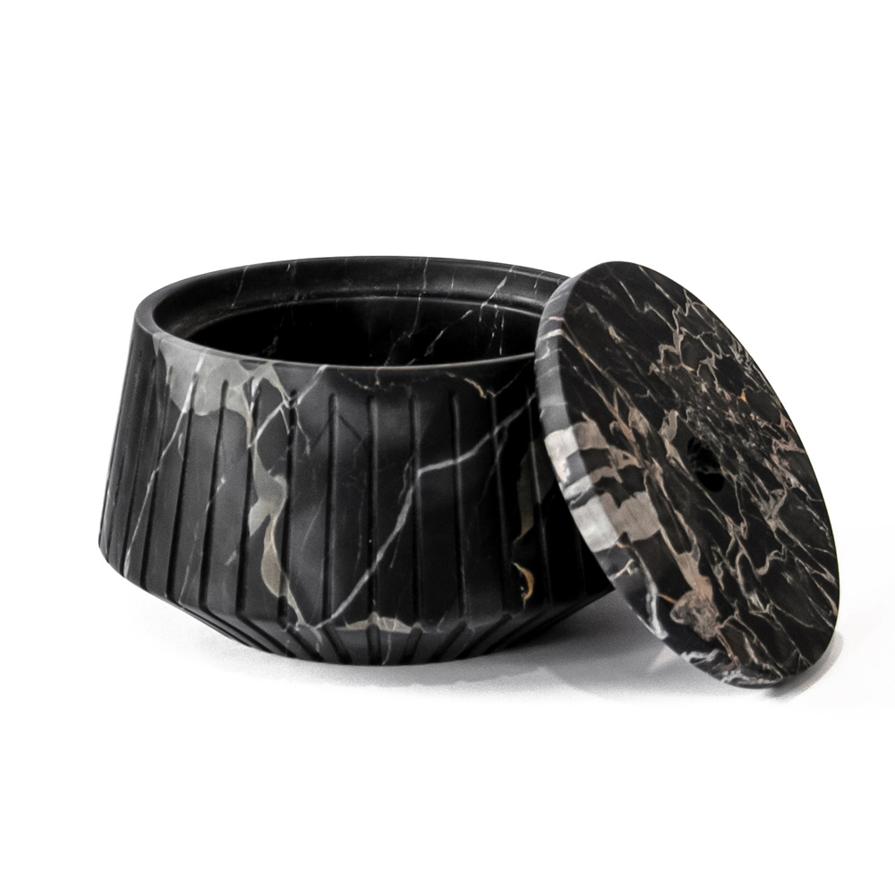 Striped object holder in white Carrara marble or black Portoro design made in Italy.