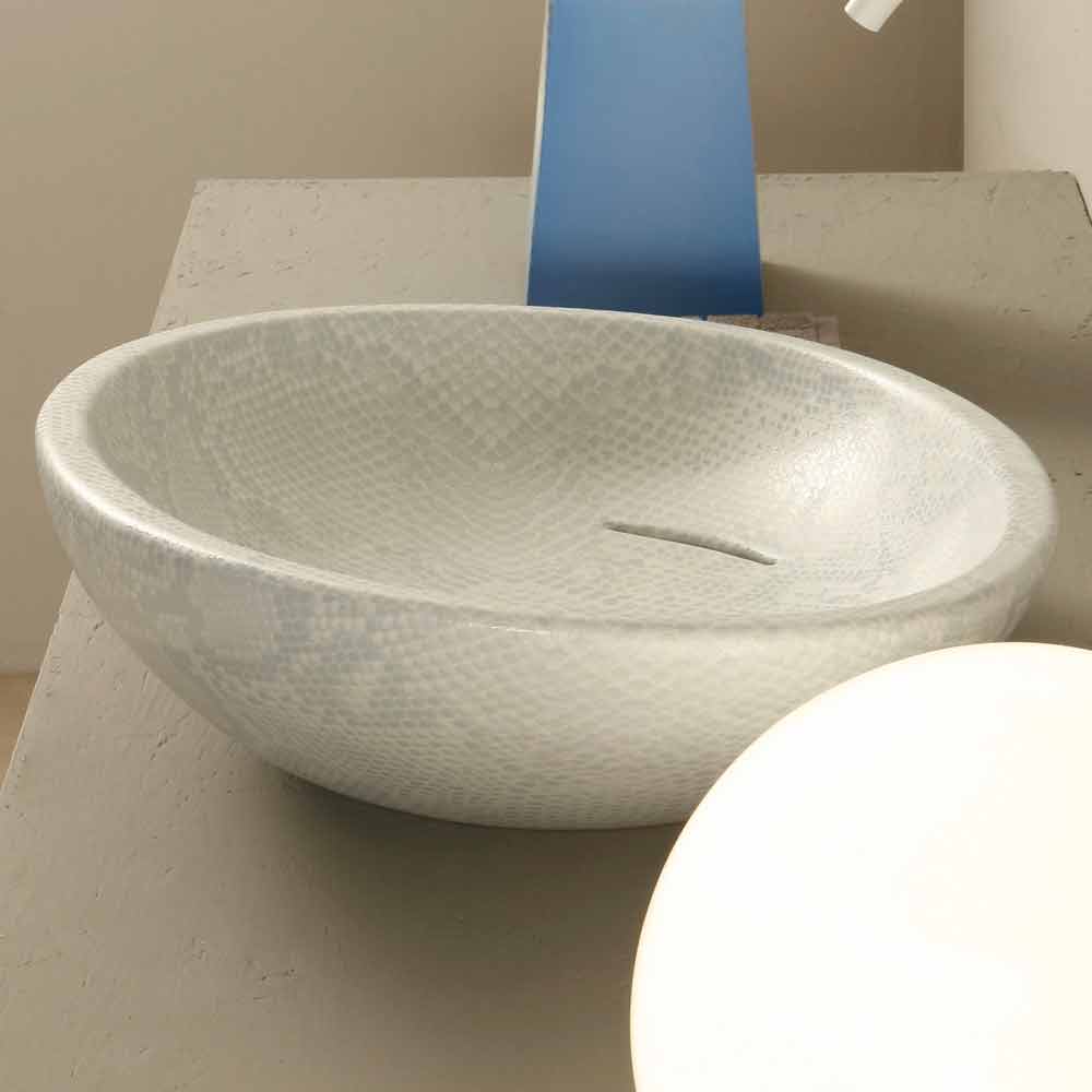 White ceramic countertop Glossy with snakeskin pattern, made in Italy