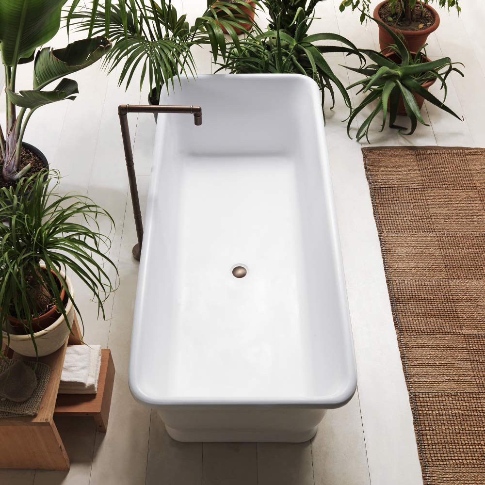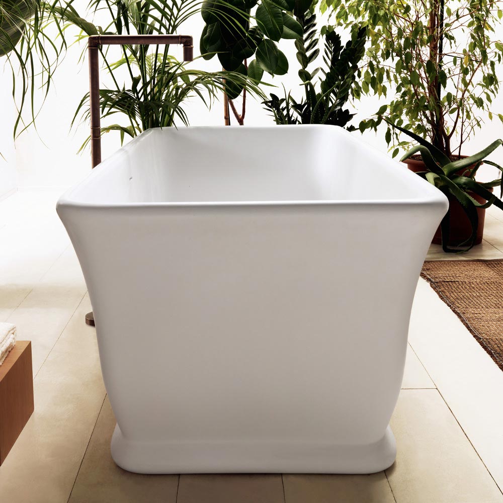 White bathtub in Solid Surface , a mixture of acrylic resin modified with mineral compounds, with integrated overflow . Bathtub dedicated to lovers of the traditional clawfoot tub. Choice of matt or glossy white. The composition mixture allows this characteristic color to come out. This mixture is also highly renewable, homogeneous and 100% non-porous and therefore waterproof.