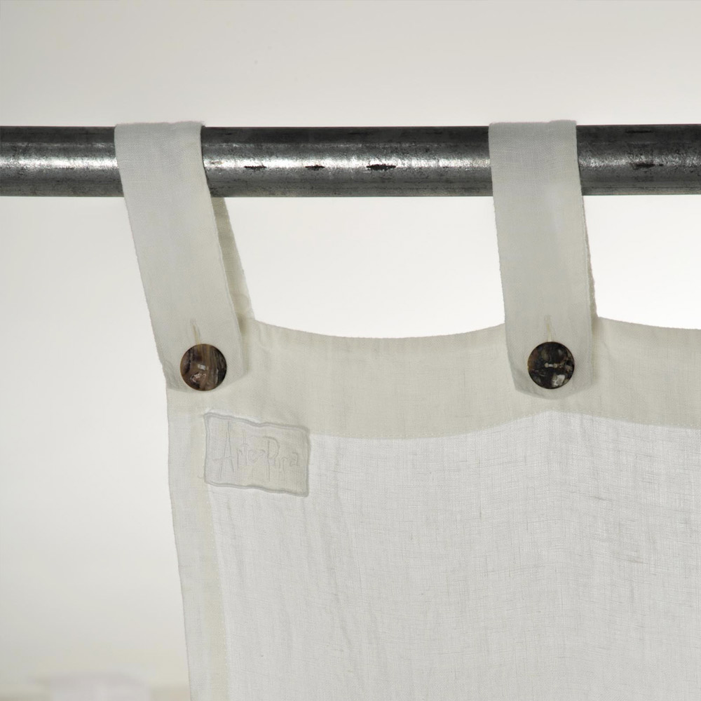 White heavy linen curtain with mother-of-pearl button fastening, handmade quality made in Italy.