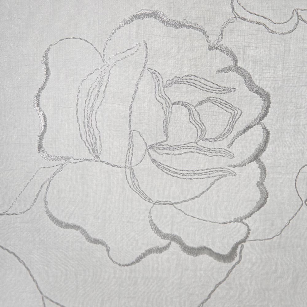 White curtain in linen gauze and organza with embroidered roses, elegant design made in Italy.