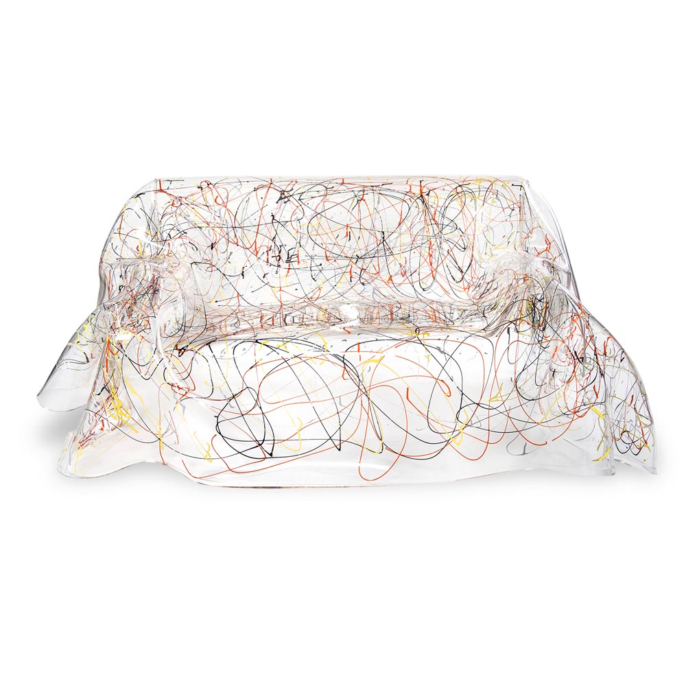 Modern design sofa in white or multicolor plexiglass, made in Italy.