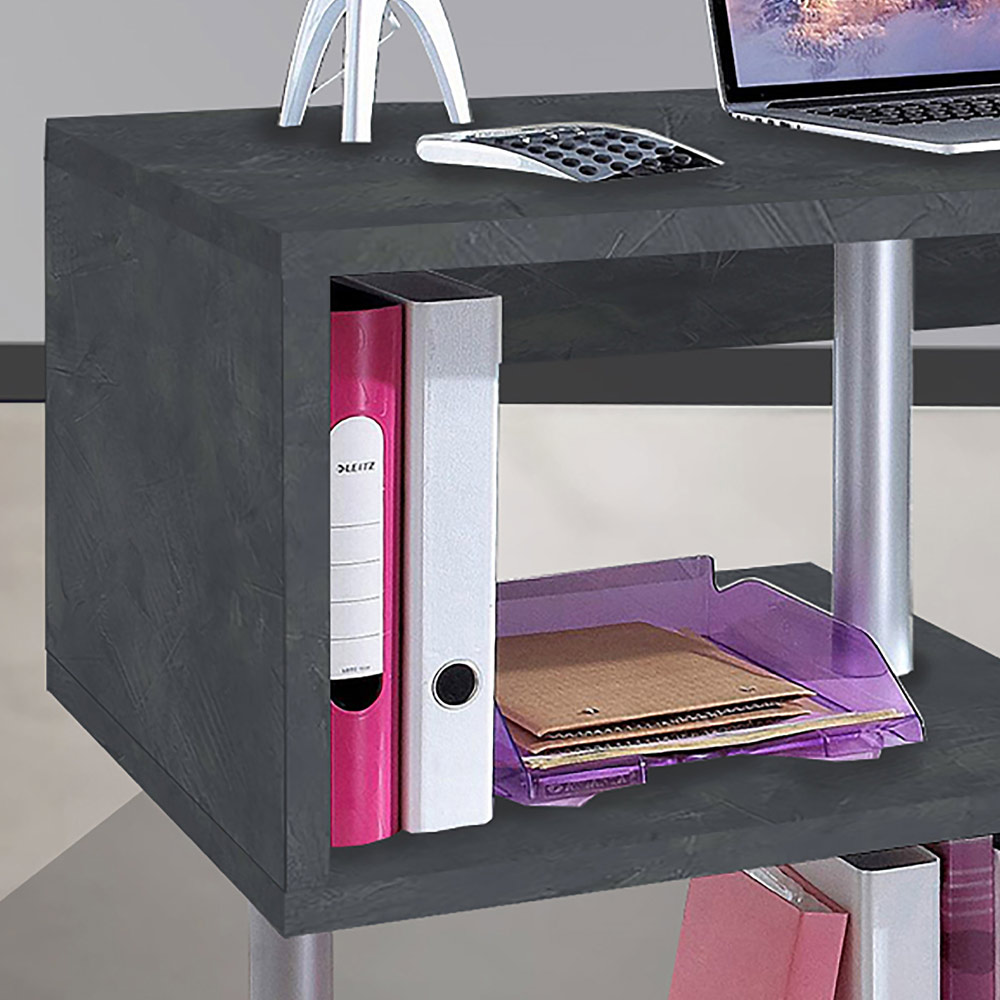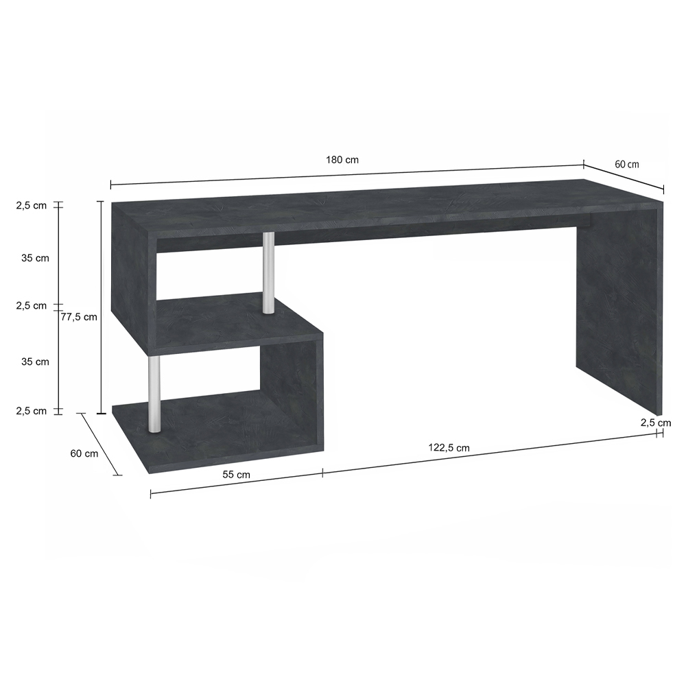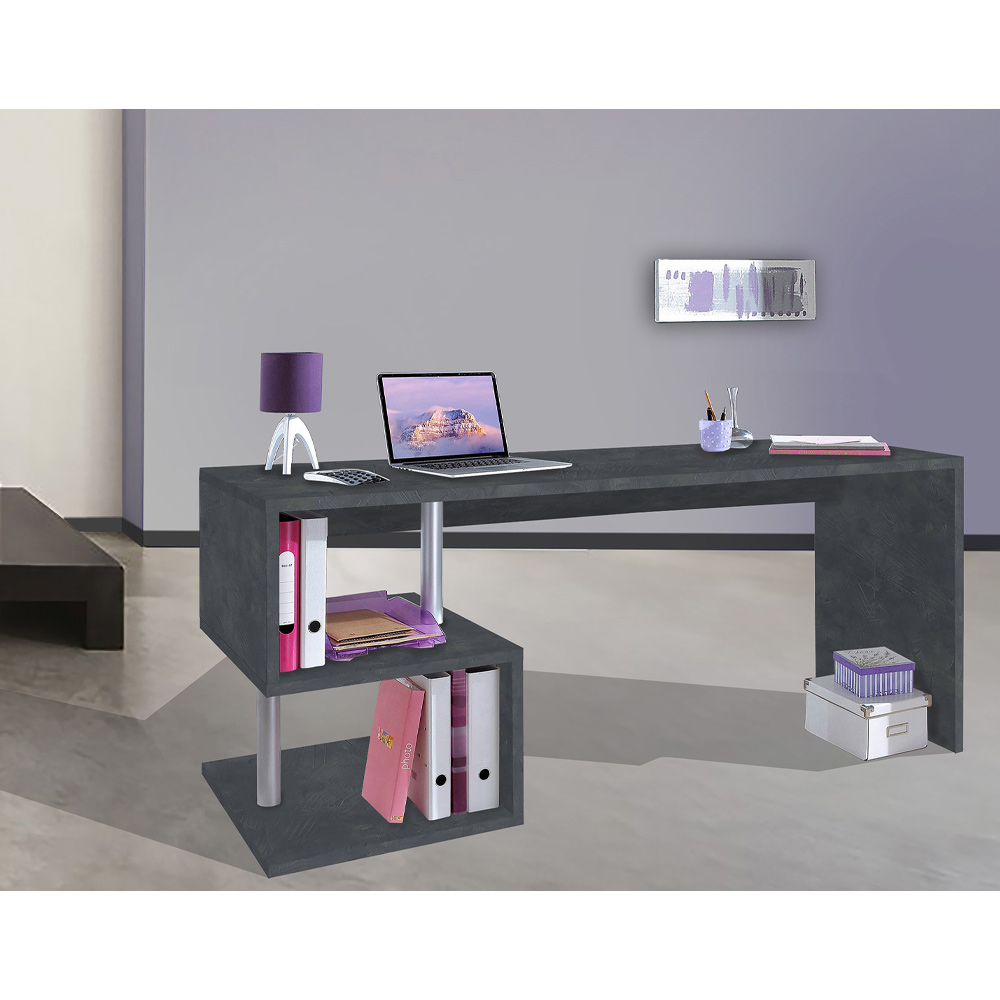 The office or study desk is characterized by its modern and puristic design with a practical side shelf in the shape of an "S" with 2 open compartments which gives the structure a particular and contemporary look. Available in three different sizes, it easily adapts to different contexts thanks to the generous and functional dimensions, with the practical storage space underneath.
