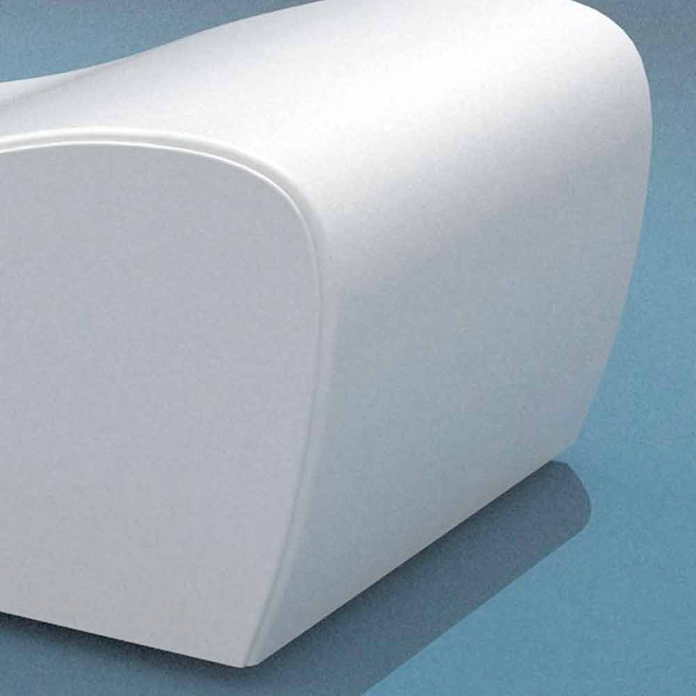 The Onda chaiselongue can be used in Spas, hotels, resorts and it is suitable both for indoors or outdoors. It is made of white eco-friendly nautical faux leather. This kind of coating is certified for outdoors and it is stain-resistant, anti-humidity, removable, easily washable, water-resistant and fireproof. The padding is made of non-deformable polyurethane foam. The Onda lounge chair is provided with a 1 cm plywood base and 4 feet.
