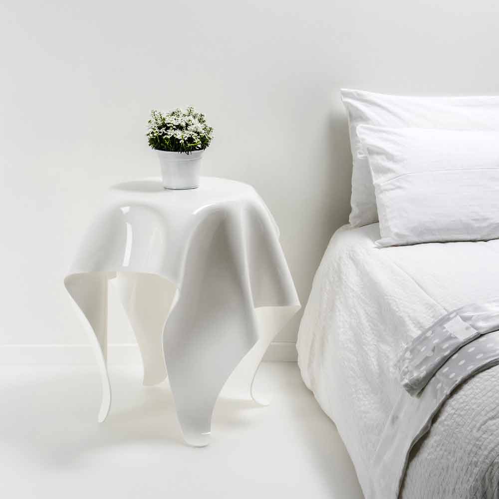 Each "Otto" table is a unique modern art piece. It comes from a 100% pure PMMA "Chanel" plexiglass sheet which has been hand-draped. Self- supporting.