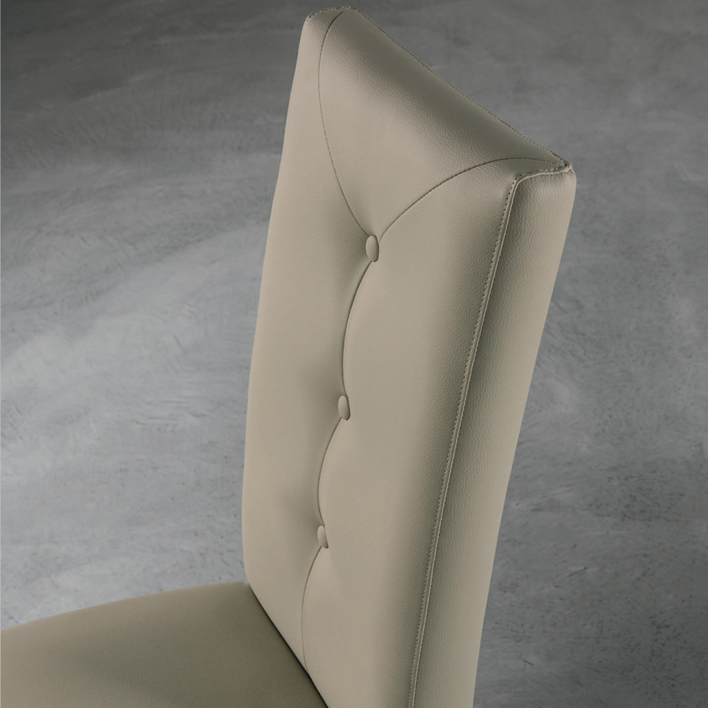 This living room chair is made in Italy with lacquered beech wood structureĀ and available in various finishes that supports the eco-leather seat with buttons on the back. Its modern and elegant design is characterized by pure and simple lines that ensure maximum comfort while guaranteeing a high aesthetic taste.
