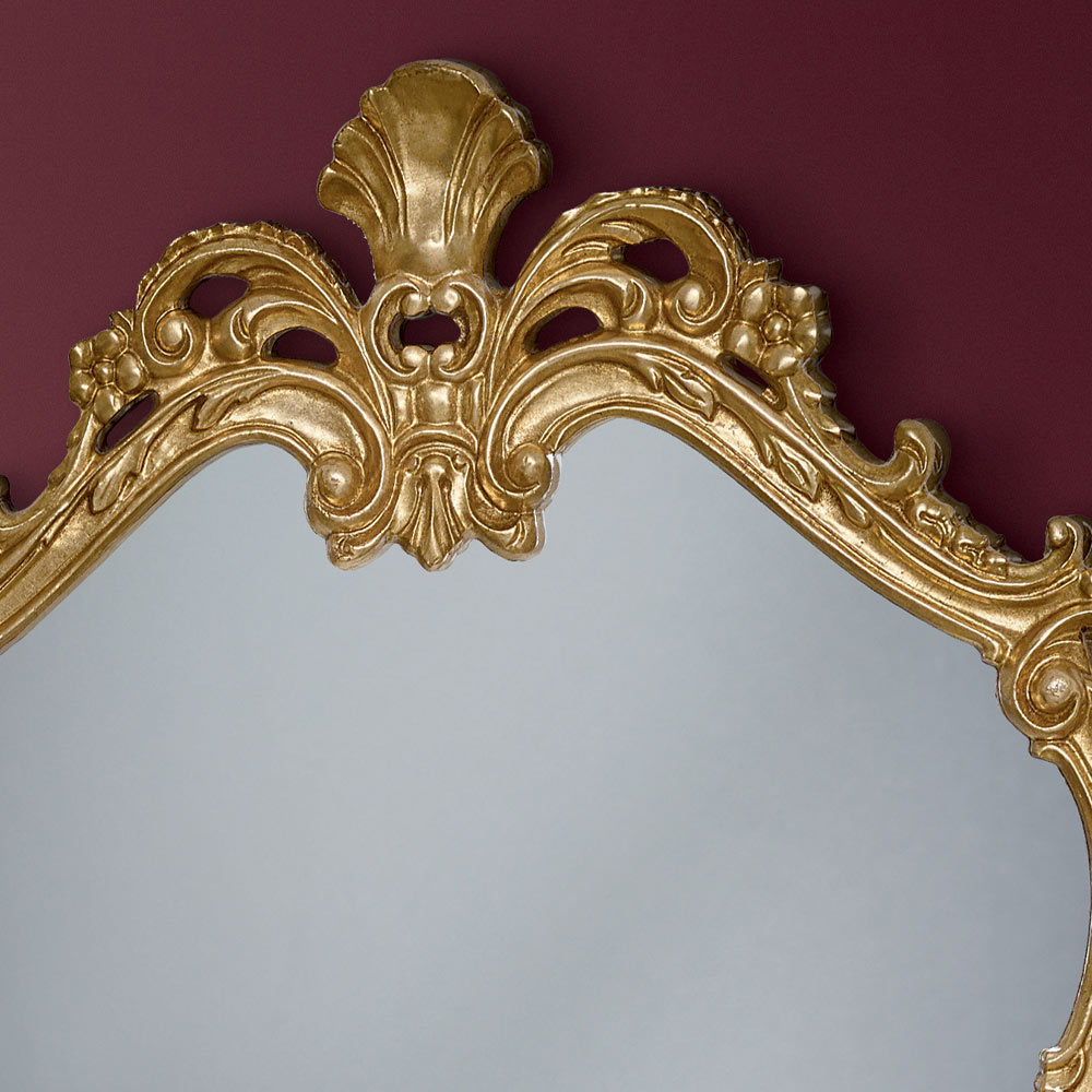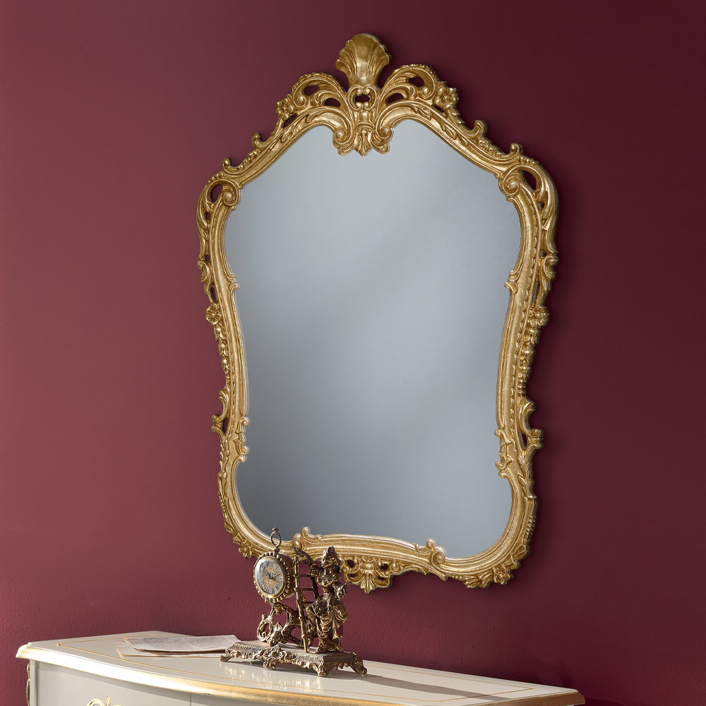 Shaped mirror with perforated wooden frame and decorated with gold leafclassic style , this mirror is ideal for giving any room an elegant and luxurious touch. A unique and refined complement, completely made in Italy by skilled master craftsmen , masters of art who finish each complement with wisdom and taste for elegance. The production is carried out using fine materials , and performing the workbyhand with the utmost care and professionalism that distinguishes Made in Italy products.