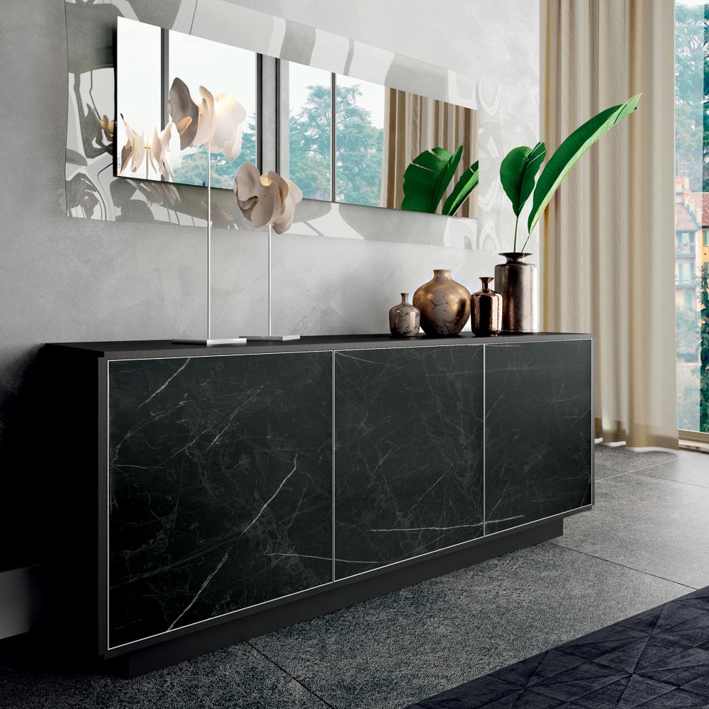 Sideboard in lacquered wood with doors in HPL laminate with marble effect Made in Italy.