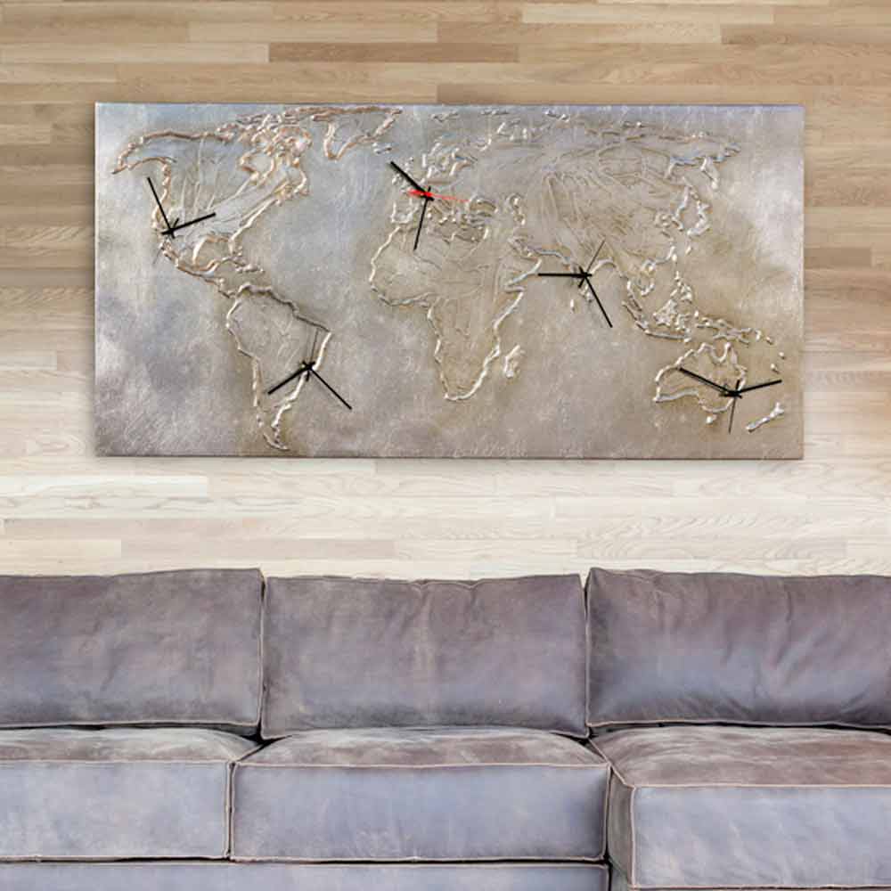 World map wall clock Miles, with 5 clock faces, made in Italy