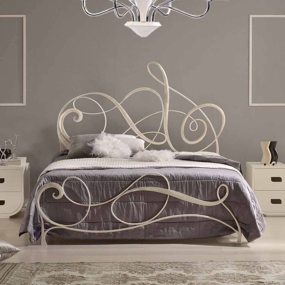 Wrought iron double bed Atena, classic design, handmade in Italy, suitable for a 160x190 cm bed base