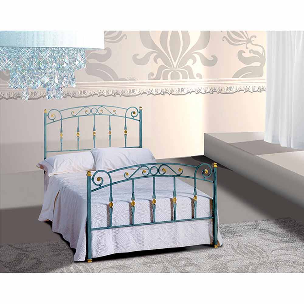 Wrought-iron small double bed Diamante, handmade in Italy.