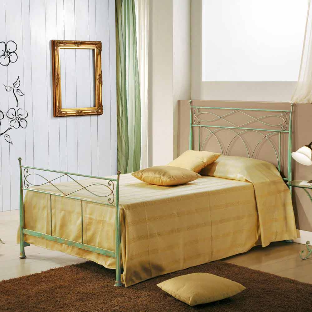 Wrought iron small double bed Gabriella, classic design, made in Italy, suitable for a 120x190 cm bed base