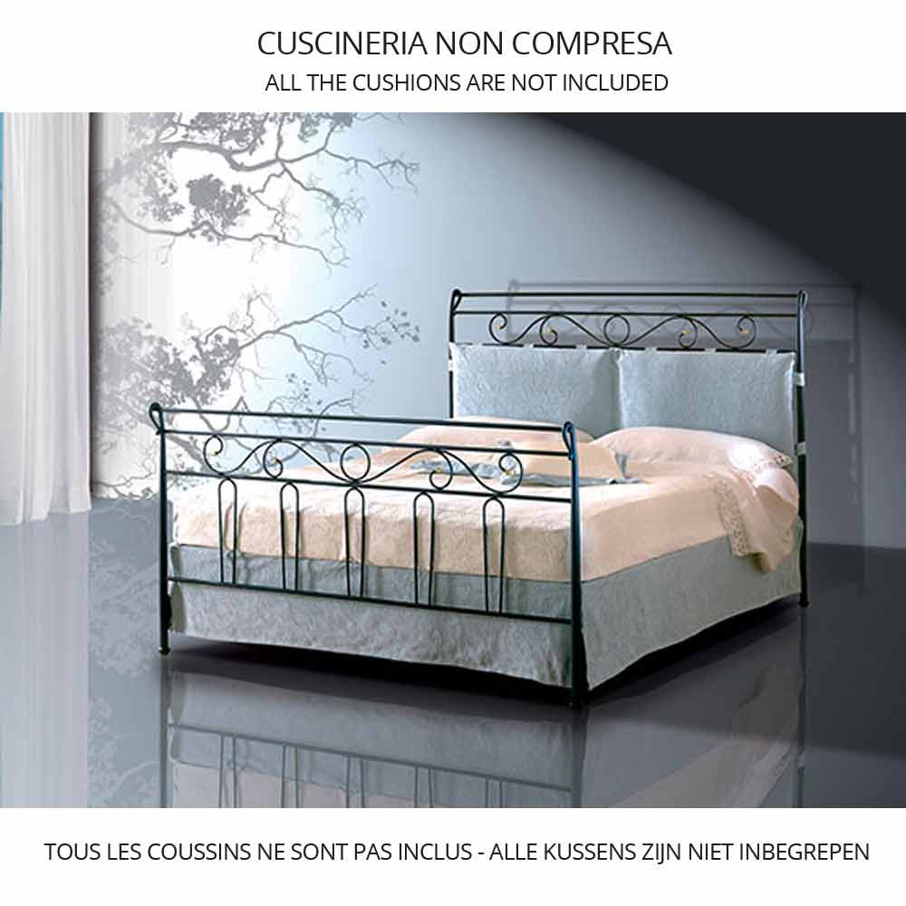 Wrought-iron small double bed Giglio, handmade in Italy.